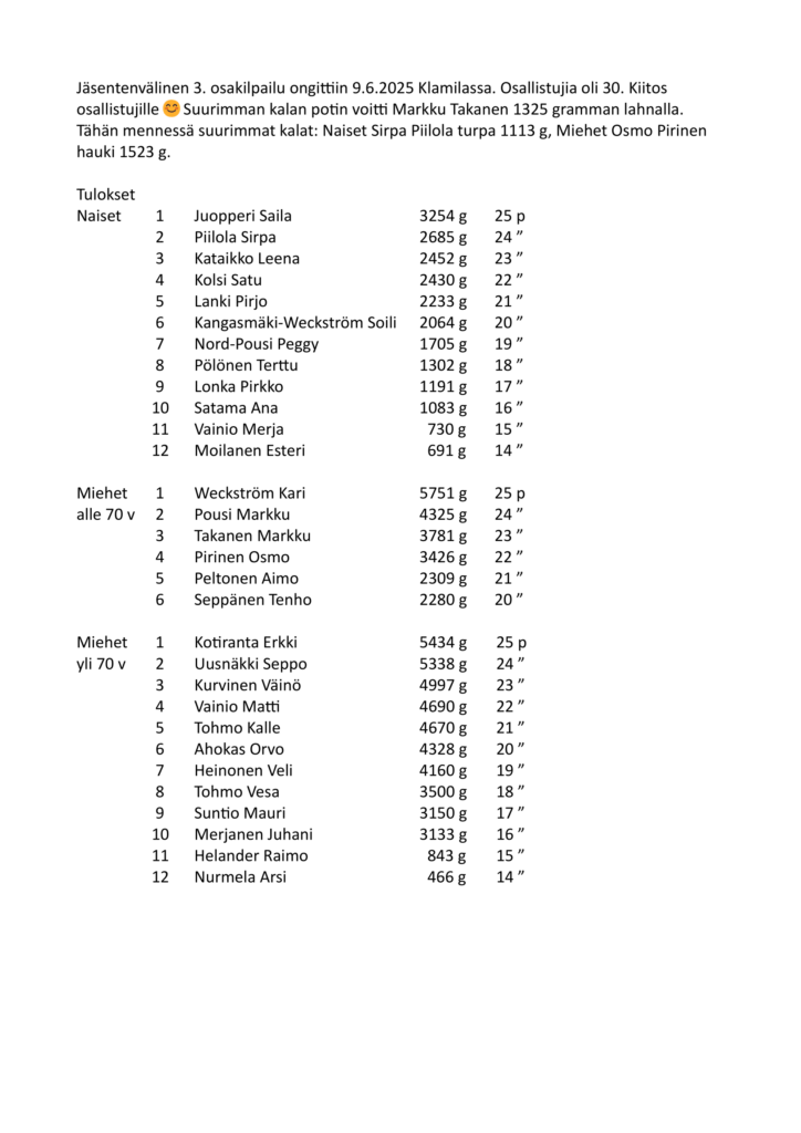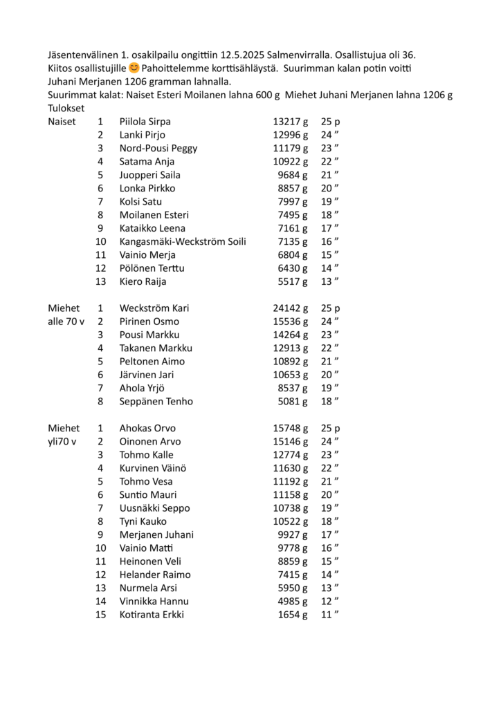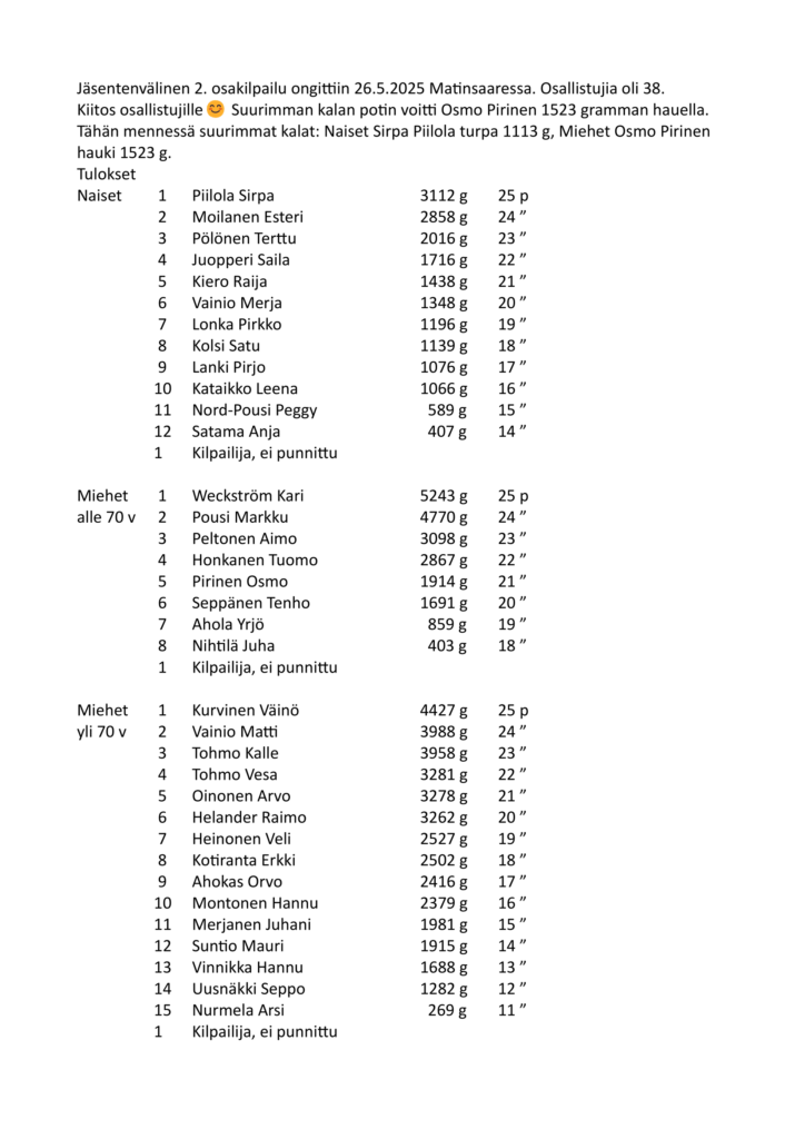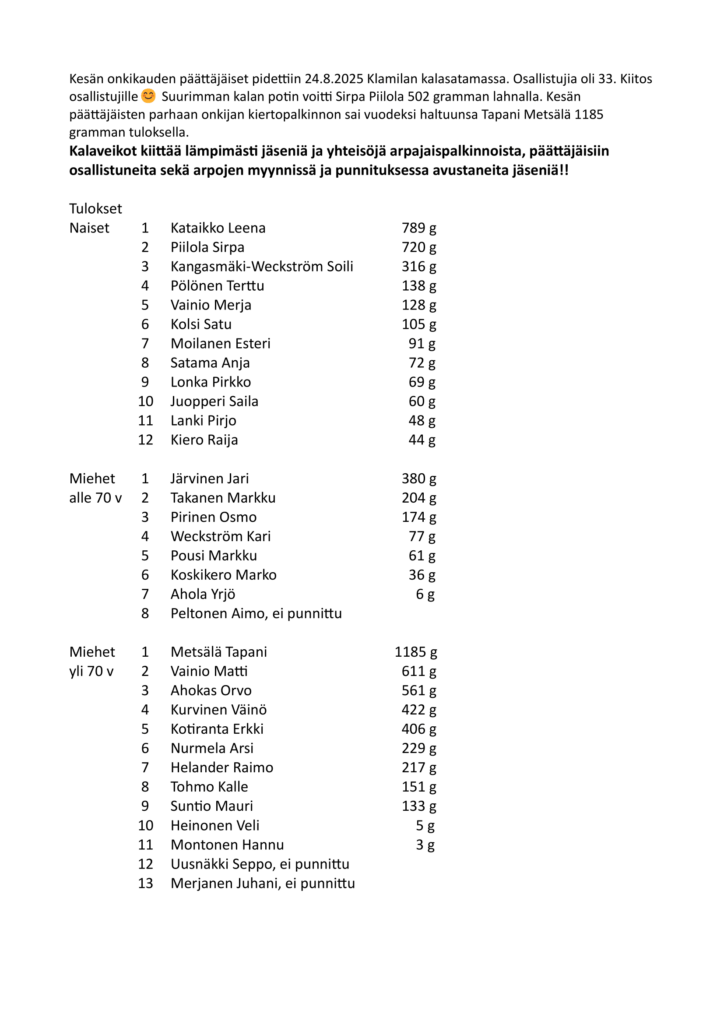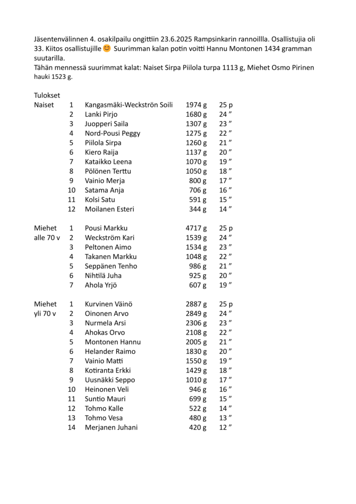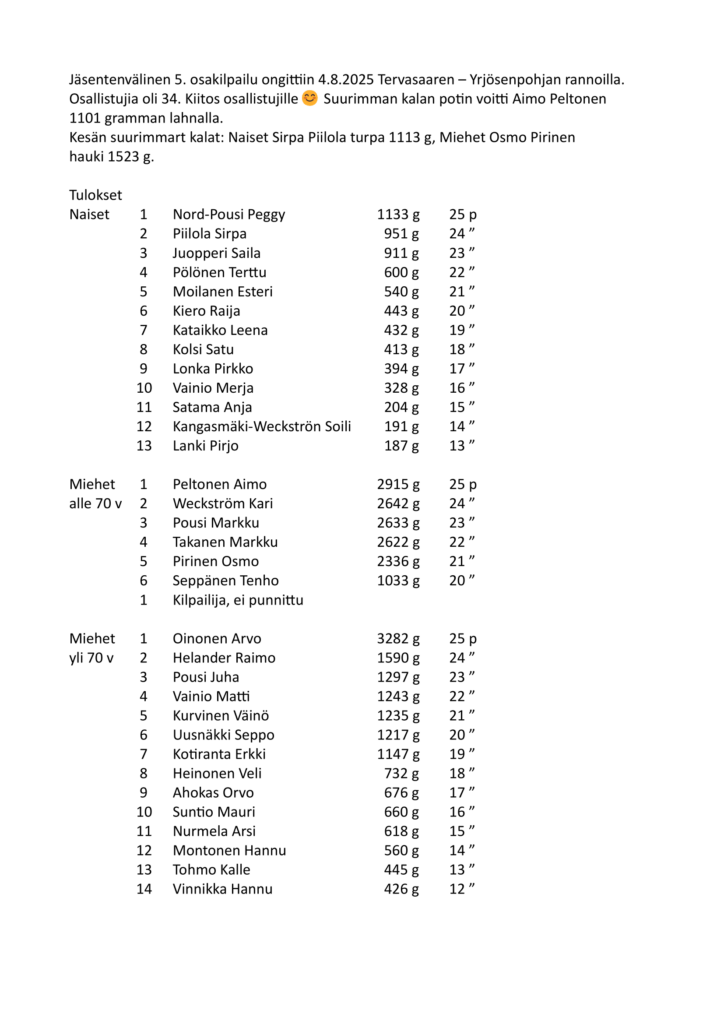 Seuramme menestyjiä PM-laituripilkissä 20.9.2025 Loviisa