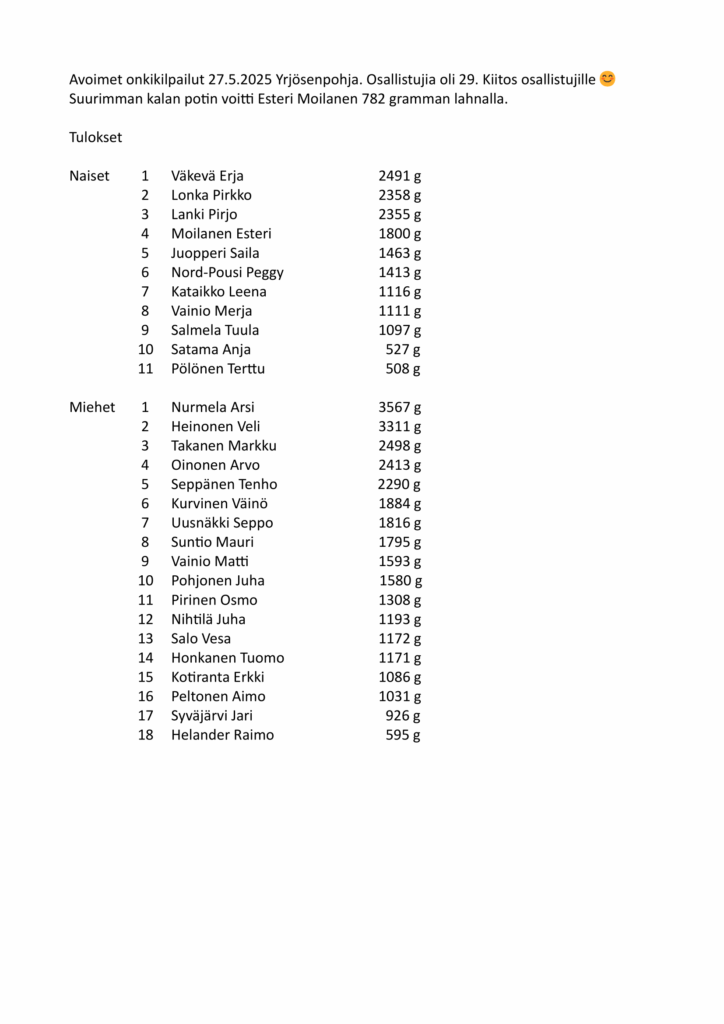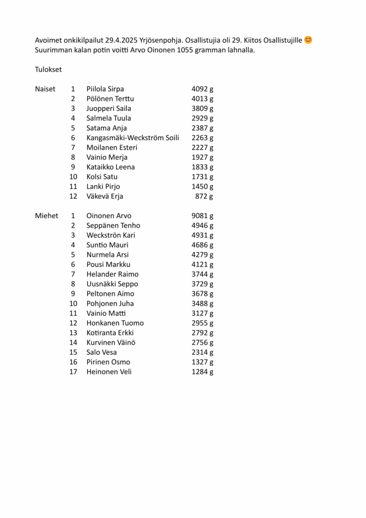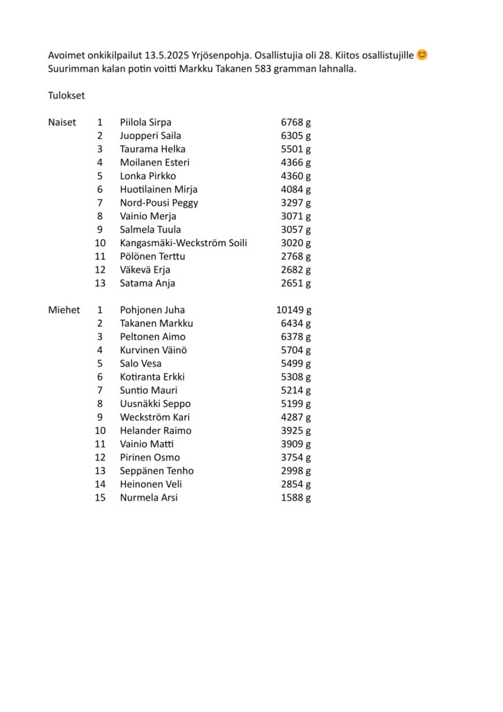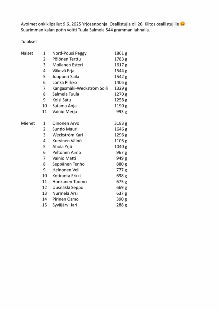 Onkituloksia 2025